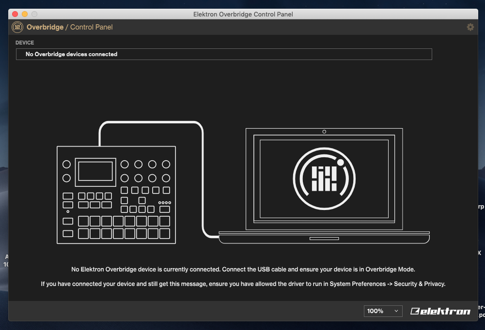 Does anyone get a message when you try to rune the Overbridge control panel that says that the device cannot be read? Make sure the device is in overdrive mode, and to allow the driver to have access to run according to my system preferences. i’ve done all these things and still can get no connection even when i put my digitakt in overbridge mode.