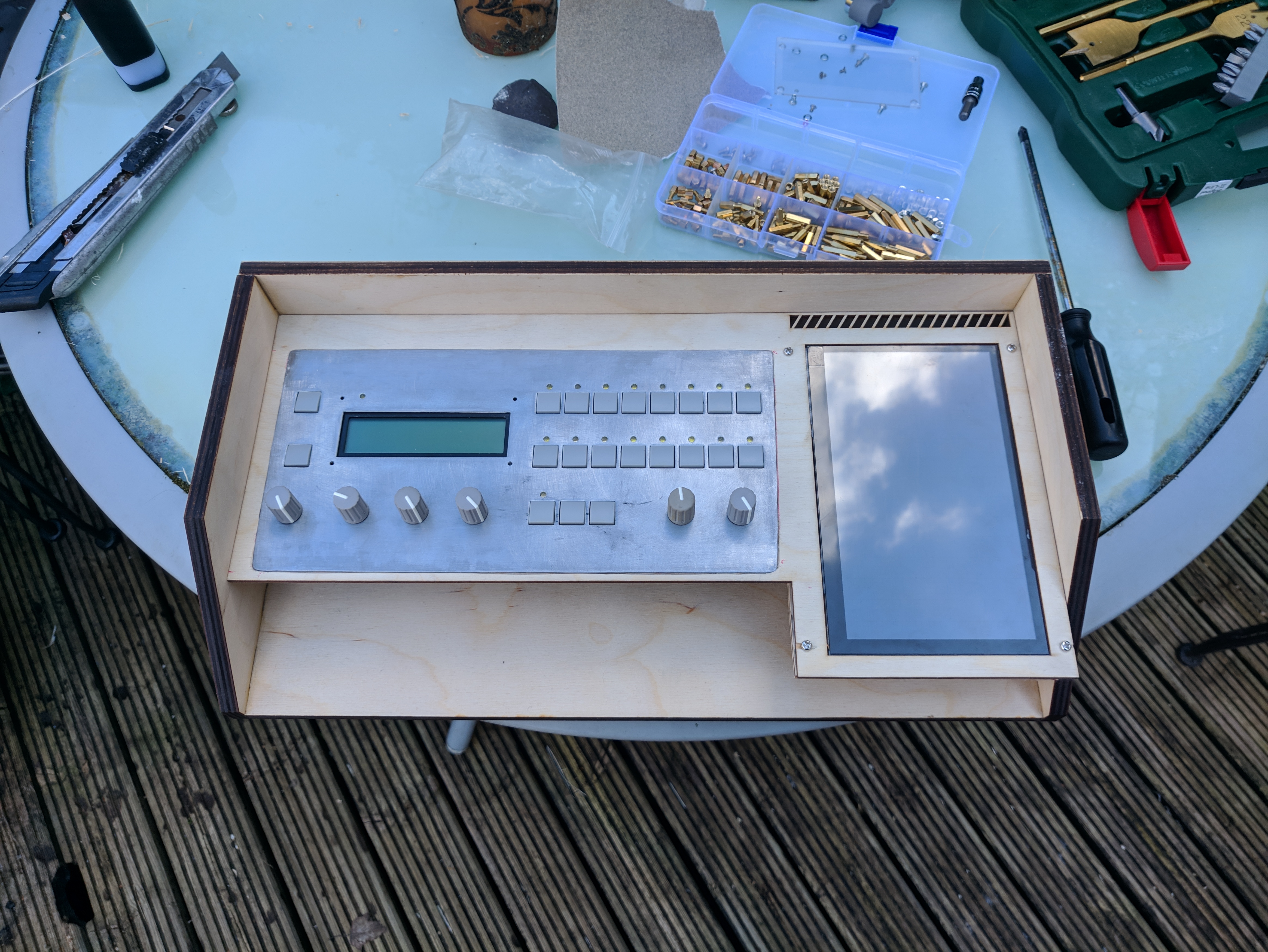 I’m finishing the fucking thing! Nearly there. Aiming for power on next week, if all goes well. Got a name for it and some artwork on the box. Main panel with the virus, screen and computer is all finished. Just wiring and fittings to do.