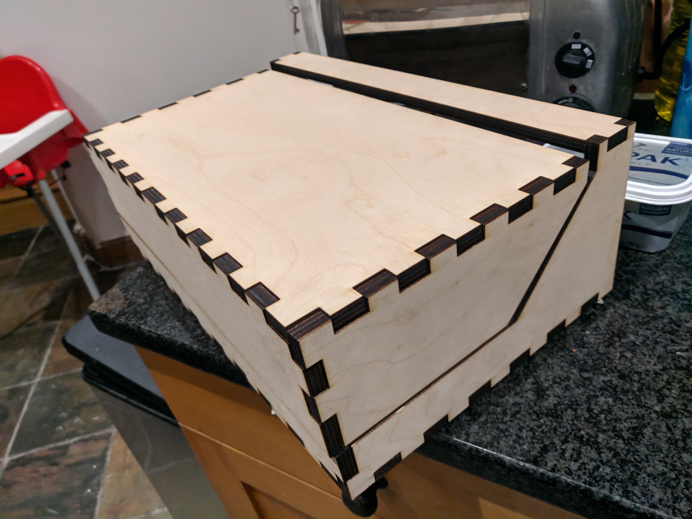 Big update! I’ve basically finished the overall construction of the box. All that’s left to do is wiring up all the electronics and soldering the I/O panel, and of course finishing the wood.