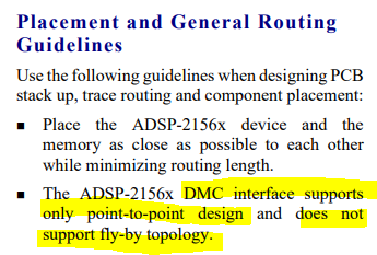 Regarding the 400MB RAM limit and the DDR3L limit of 1024MB – I was hoping the ADSP-21569 supported multiple DDR3L ICs via fly-by or T-branch topology, but it appears the DMC only supports point-to-point interfacing: