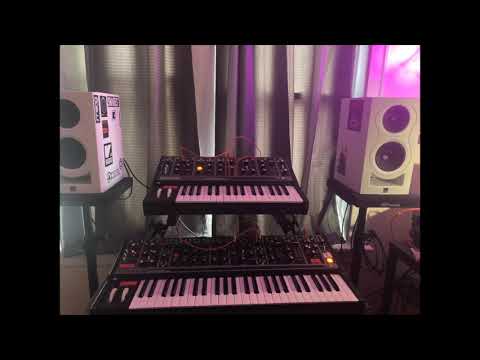 Matriarch and Grandmother. Patched the stereo delay time and PWM to the LFO and some filter resonance, then synced to the LFO of the Grandmother.