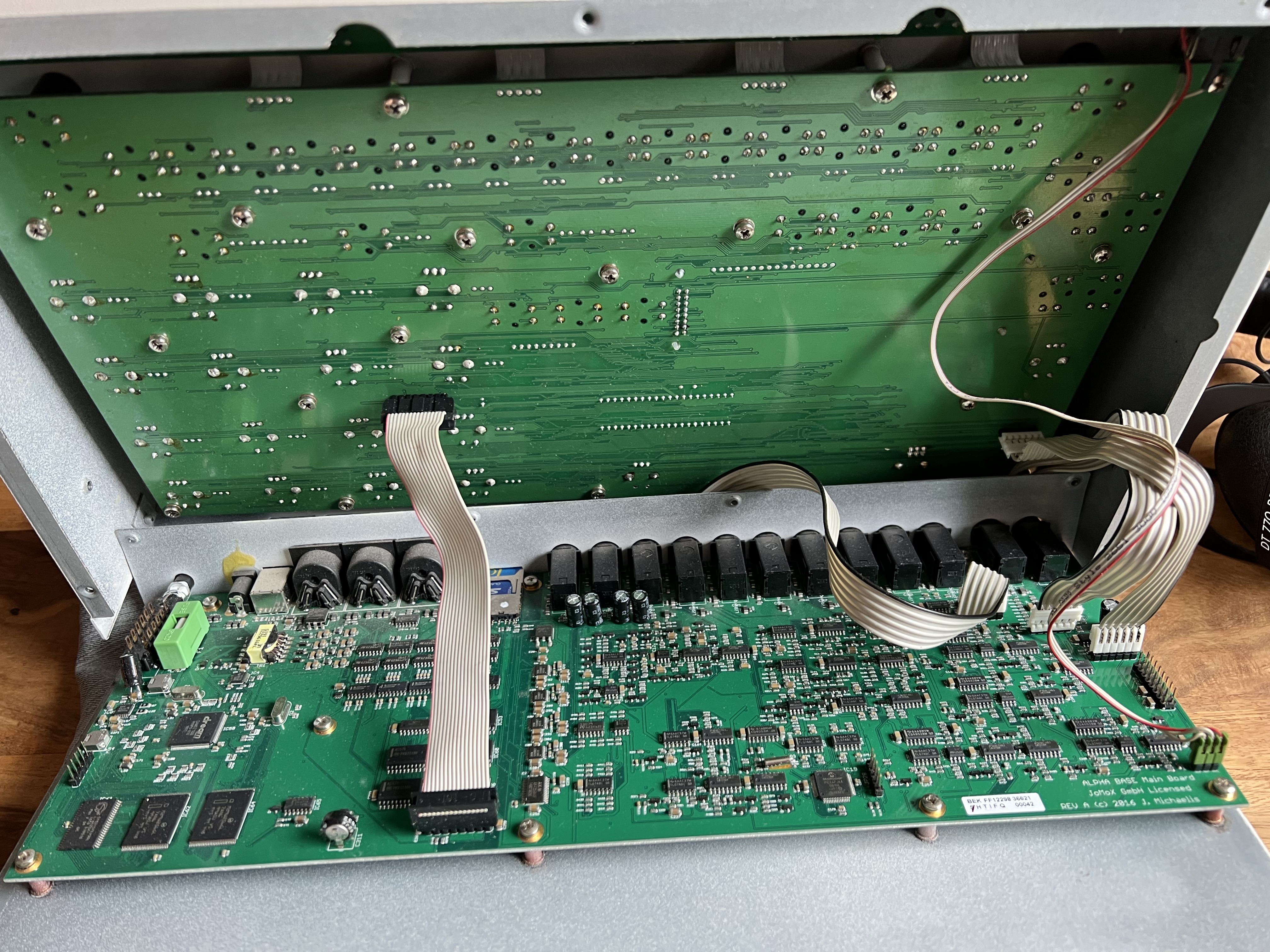 So I recently came into the possession of an Alpha Base MK1 and to be honest, Iām blown away (quite literally) by the sound of this thing. The user interface is quite simple but also quite quirky and some of the step buttons (and other buttons of the same fashion) I had to hit really hard or quite deliberately. So I figured I open the thing up and give everything a good clean. To make the process easier I was looking for some teardown pictures of the AB but found none. This is why Iāll share the following photos I took during the process. The thing is quite empty on the inside and consists of three pcbs (2 for the controls, 1 for the sound generation and I/O). It has some interesting design choices for sure. So many screws for the pcbs! All the black buttons are some really cheap low travel ones. It would have been great if those were the same as the instrument trigger switches, but I guess that would have been more expensive. Maybe the pictures help someone that wants to do some repairs or is just curious. Side note: the button behavior did not improve at all, even though I used some WD40 contact cleaner on them, so I guess itās just the way they work. Rubber coating aside: Elektron users are spoiled with the switches they get