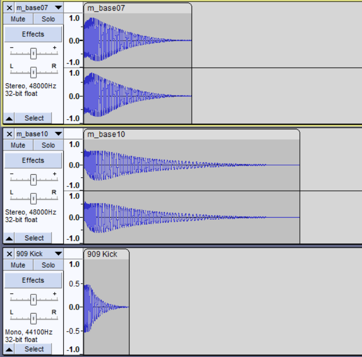 Interesting. I see one of the Mbase kicks has a curve in the opposite direction (top two). 909 for reference at the bottom