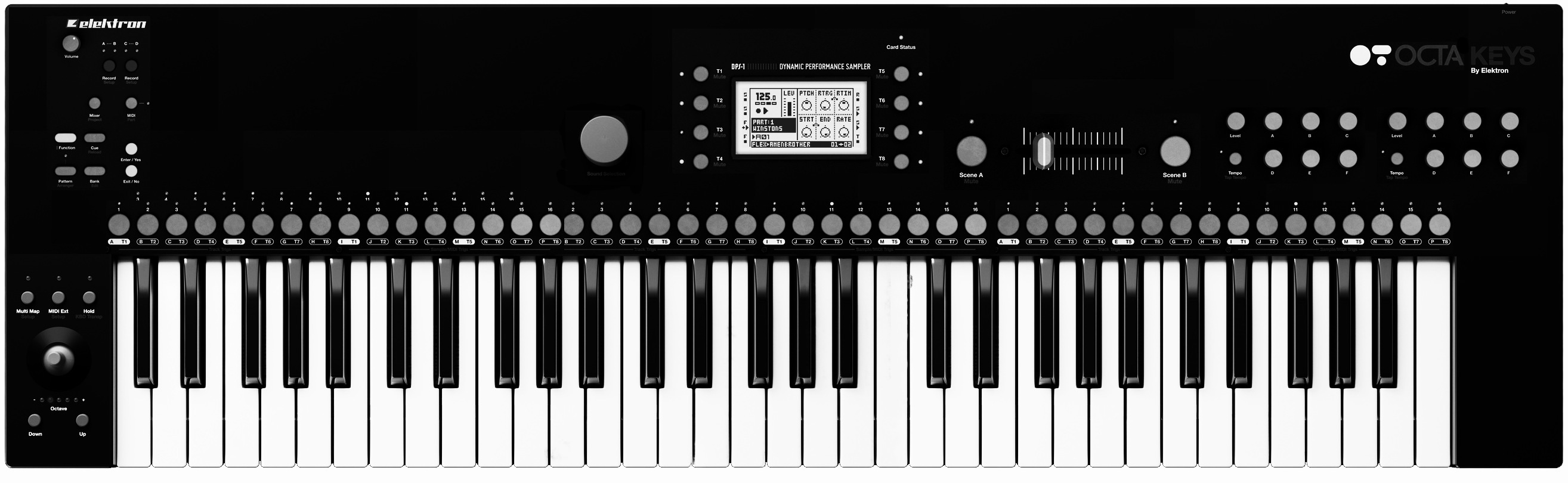 This thing looks amazing… and the biggest thing of all… playing slices via keyboard! Velocity sensitive! Also, individual stereo outs for each 8 track. Plus, in addition to original 4 Octatrack inputs will be a 13-bit A/D input (E/F).