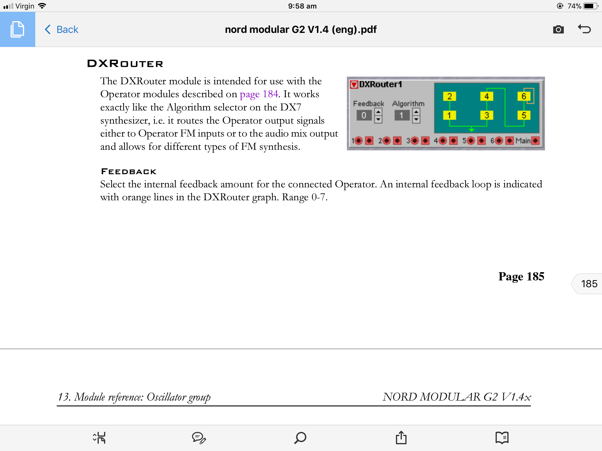 You plug multiple Operator modules in/outs into the DX router, then select the algorithm from the pull down in the DX Router.