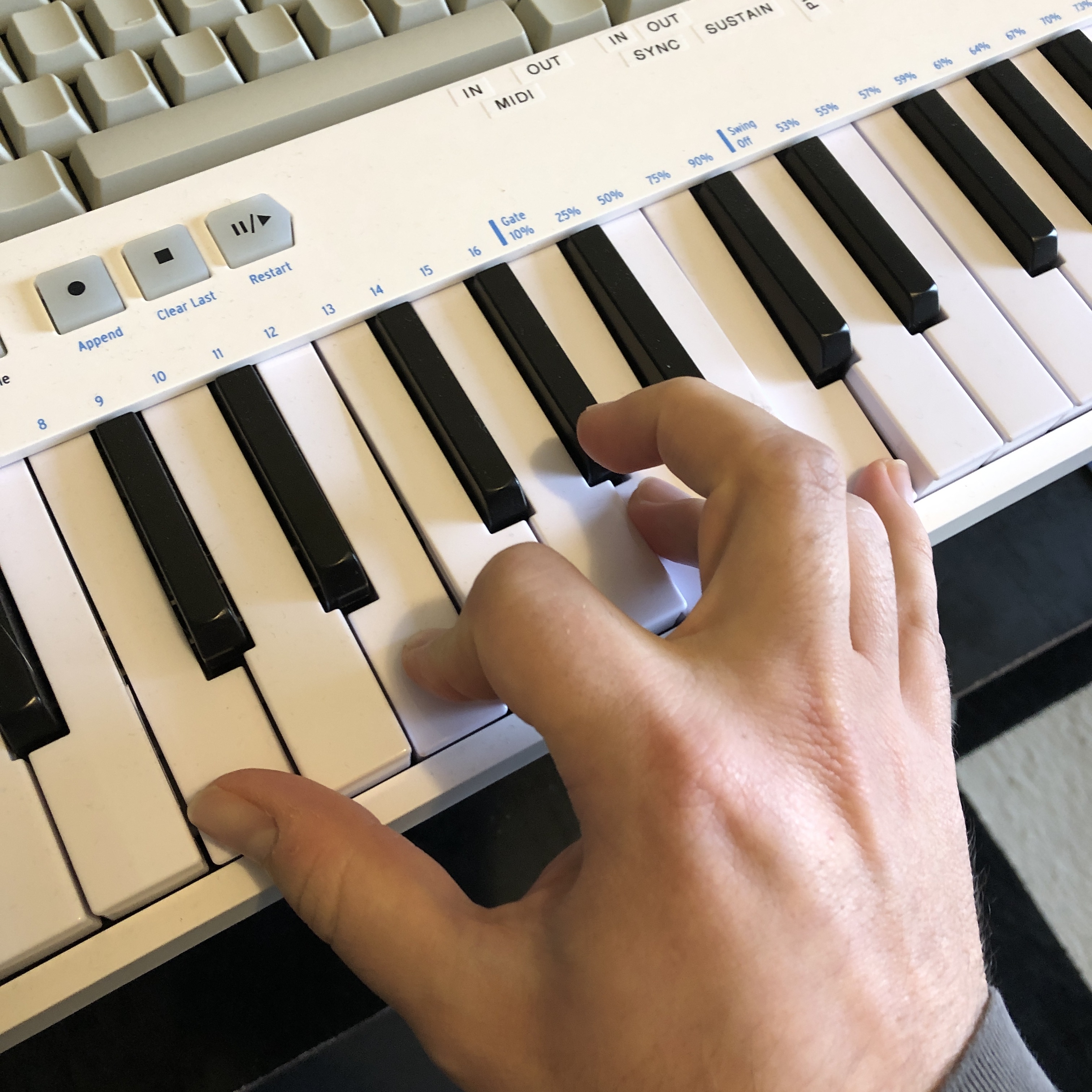 There are different approaches to technique out there, but I’m sure you know from guitar that minimizing tension is a common goal for all of them, regardless of instrument I imagine. Yeah, your middle finger will ride up relatively high on a fullsize, but that won’t matter much on a full size keyboard, a design that’s evolved over hundreds of years to provide at least just over the threshold of what you need for any non-extravagant situation. But that damn Keystep and its ilk actually force your middle finger well past the end of the key, so that you’re forced to claw significantly. It’s all fine for quick stuff and data entry, but it’s never fun.