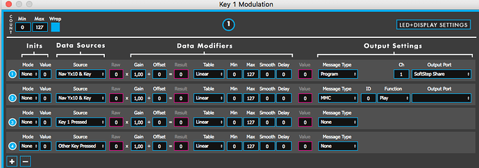 looking at the ‘output settings’, i can see you’ve selected MMC and play (which is fine but has a different purpose), it means that the Softstep will send a MMC (MIDI machine control) message, which differs from the one above.