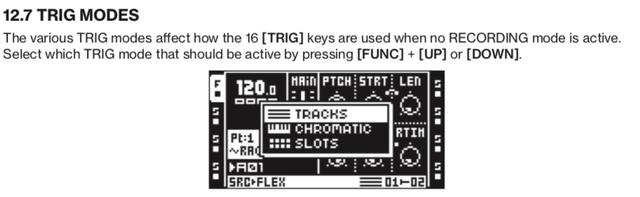 Track mode (I call it by myself “normal” mode) is when the trig keys correspond to trigs on a track.