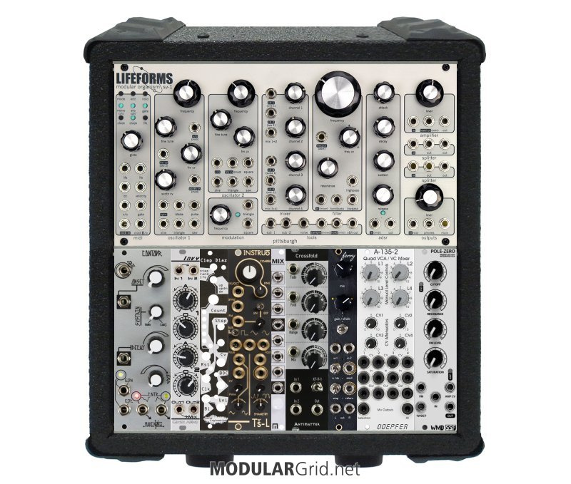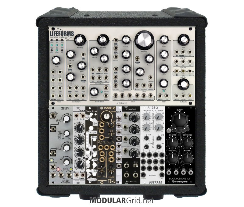 A couple of weeks back I swapped a Sequential 6-Trak for Lifeforms SV-1 in a Pittsburgh 96hp case. I couldn’t be happier. It sounds excellent. So I’m now contemplating what to add. I’m pretty familiar with many concepts of modular synthesis as I’ve have a Nord G2 for almost 10 years now. I don’t plan to go on to put together a large multi-timbral rig for self-generating experimentation. I’m pretty much set on the Instruo osc and the Erica filter (should be a good contrast to the SV-1 filter).