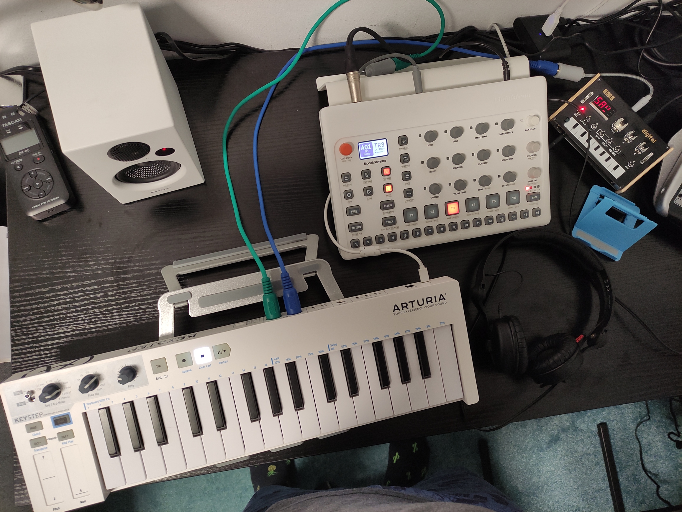 I am going away from home for three months and was planning to have this as my portable setup. M:S on it’s own, unsequenced by anything, sending clock out to Keystep which sequences a NTS-1. A Zoom ms70cdr on my Xenyx q802 USB for added effects and a XKEY25 midi keyboard for added freestyle layers via various VSTs, etc.