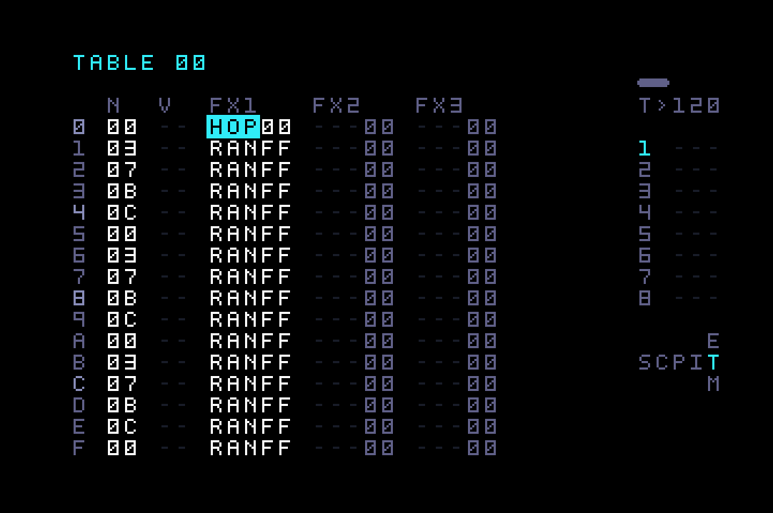 2.-You can use a table, where you write the notes of the scale that can be triggered,. Use the RAN command in all the steps, but the first one where you have to write the HOP00 command. This way everytime the note is triggered a different note of the scale will be choosen. I’ll see if I can show you a photo later of this table.