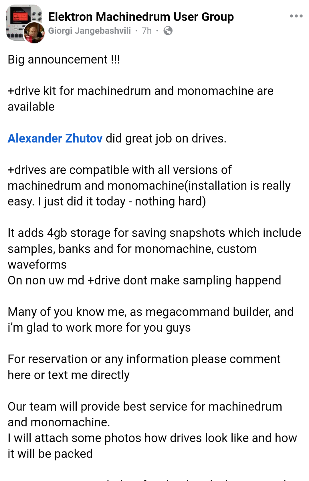 What I will say firstly is, I’m incredibly happy to see this upgrade finally being available! When Giorgi first told me of this project I doubted it was possible, but knew it anyone could manage it, he could. And here we are, with a fully-functioning +drive upgrade in 2024! The second thing I would say is, if you have reservations about the legitimacy of this, don’t worry - I’ve bought a couple of things off Giorgi and spoken to him a lot, he’s a committed and passionate designer, who always goes the extra mile to ensure quality without compromise.