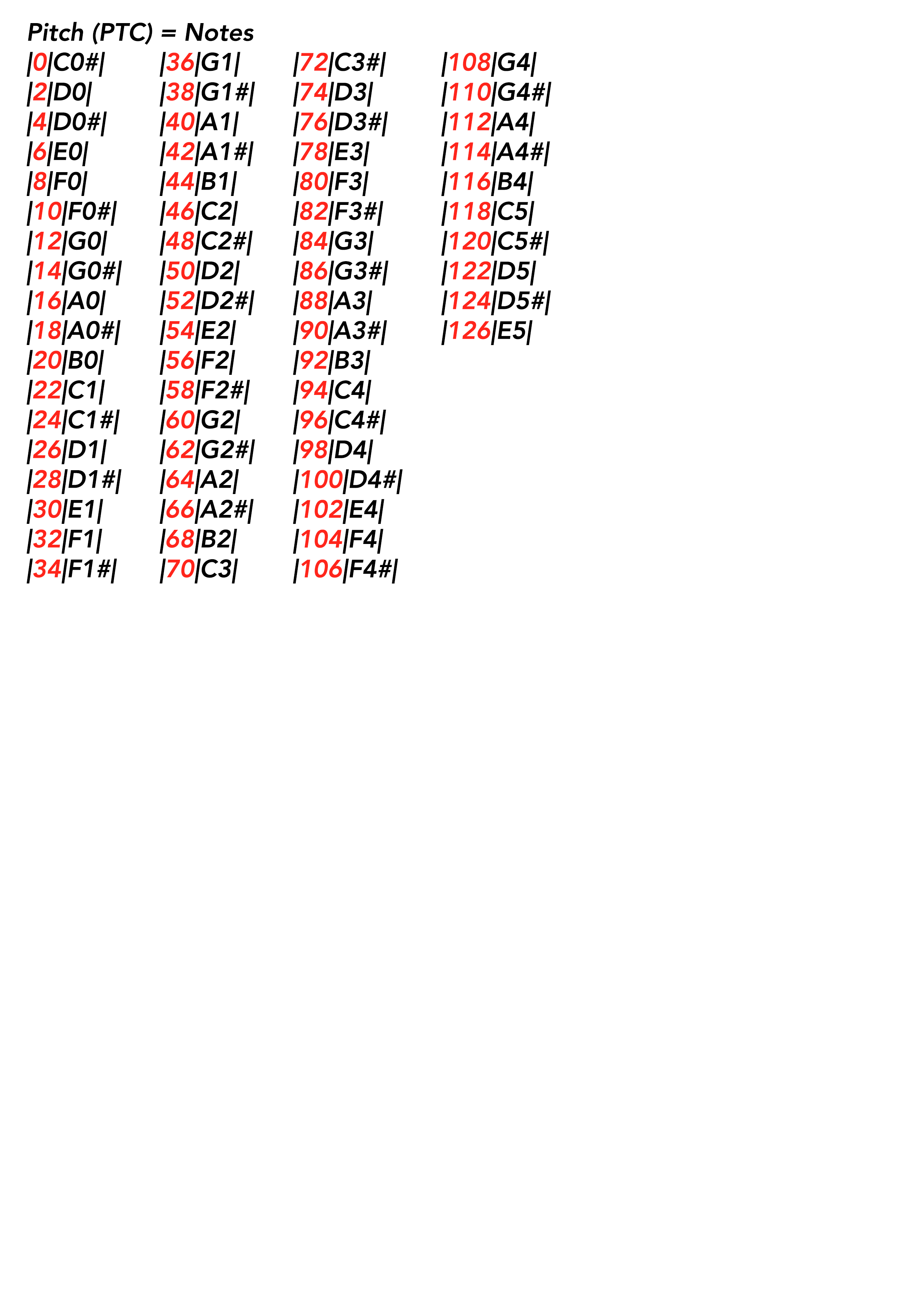 Looked around and did not find the following info, so figured I would post it here for others for future use. Machinedrum Pitch to Notes. For the TONAL compatible instruments.