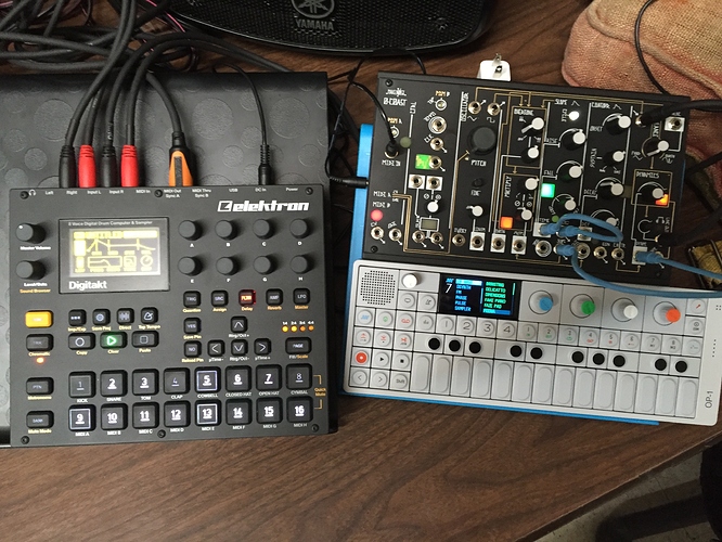 I’m still loving my 0-coast! This was a really fun set up: op-1 audio out to 0-C audio input. 0-C audio out to DT input. DT midi to 0-C. DT to mixer