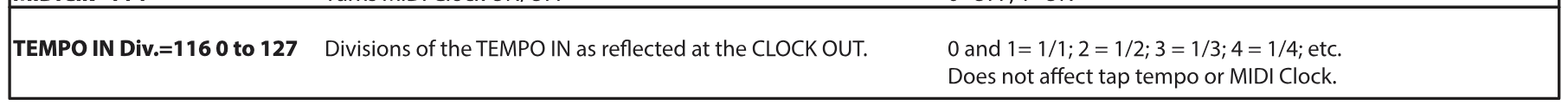 I seem to have the same issue I had last time, that is: I think the clock divider only divides whatever is coming into the TEMPO input not MIDI clock as it comes in. I guess you CAN get MIDI clock to there (From MIDI B maybe?)ā¦