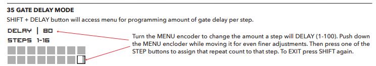 Hmmm. I wonder if you can select multiple steps and adjust multiple gate delays…