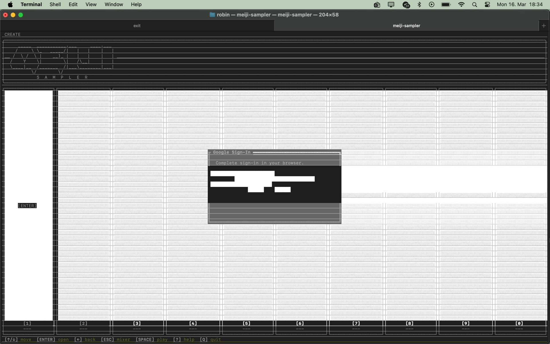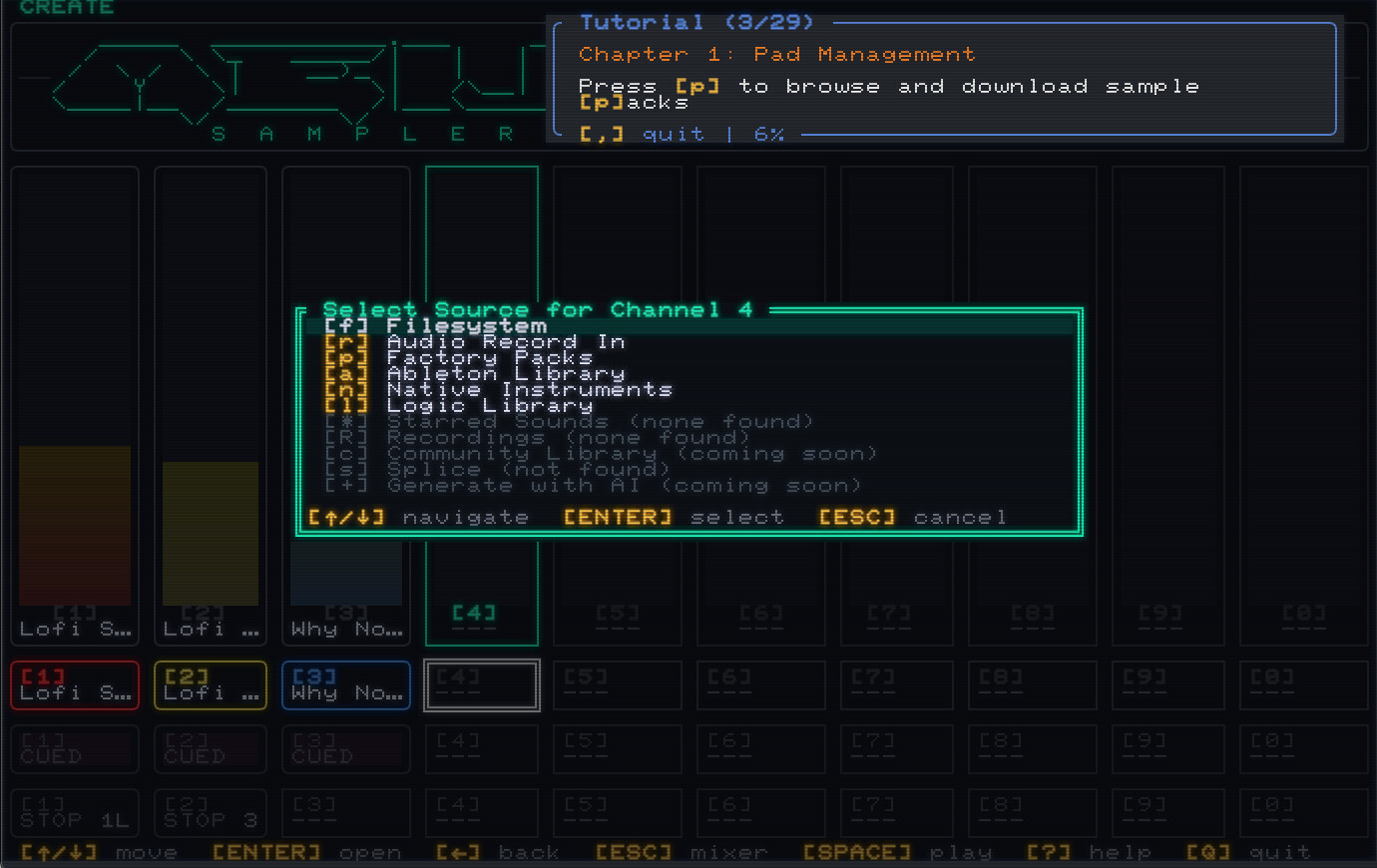 │ S A M P L E R ╰ [,] quit │ 6% ─────────────────────────────────╯ │