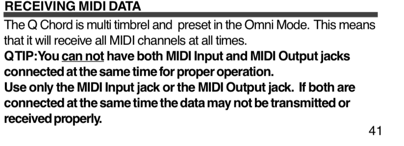Also, can you confirm that only one midi cable is plugged in to the Qchord?