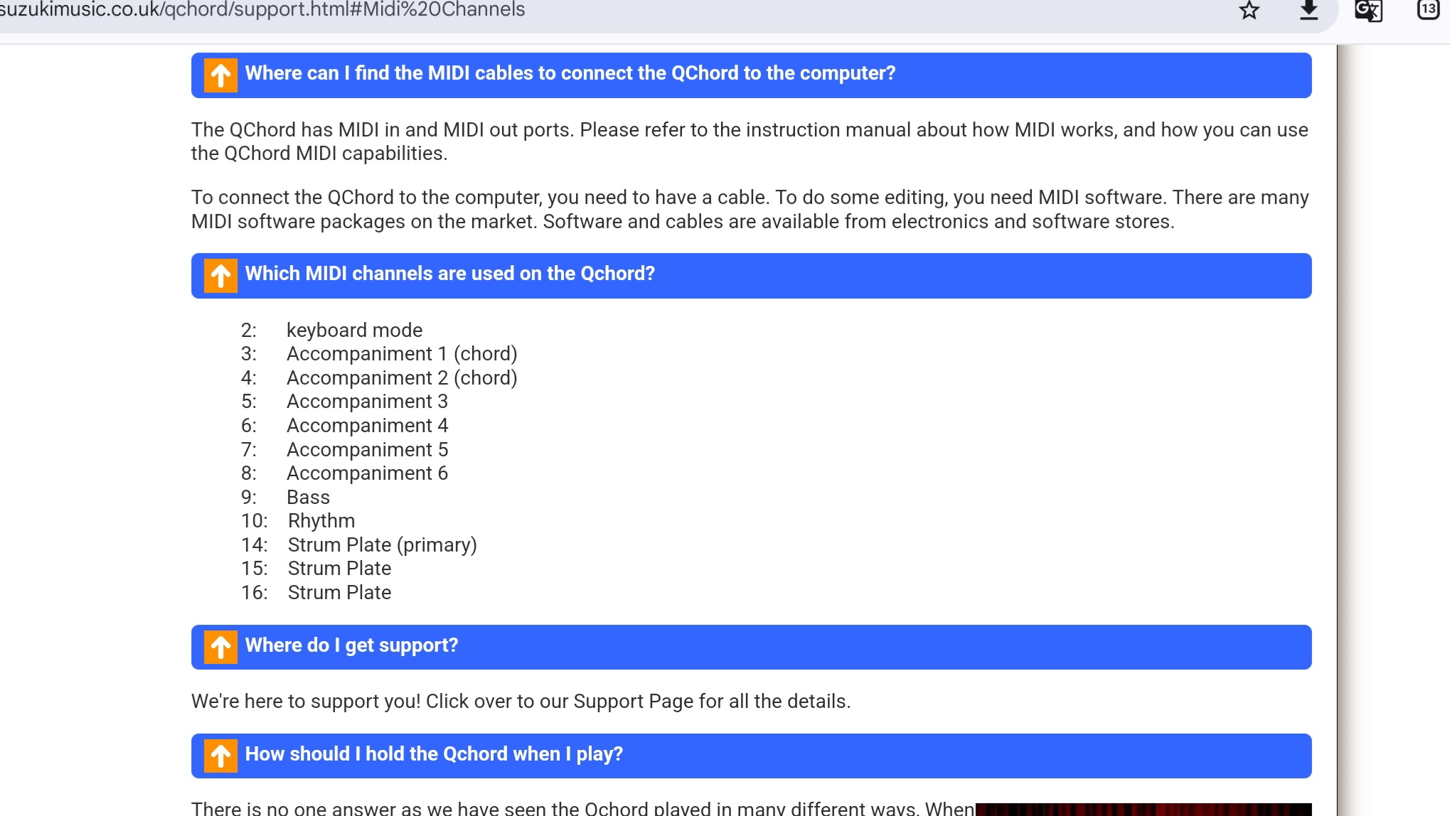 In addition to the information given by sezare56, the Qchord apparently has fixed midi channels per function so this may also be useful.
