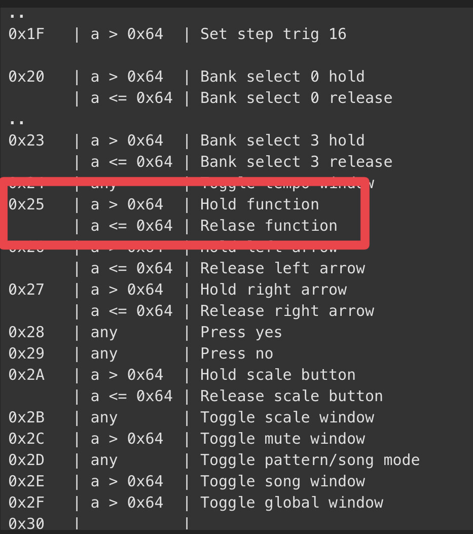 Wouldn’t help (Edit : you can test to send sysex, see below). It would require a firmware mod. I think you should be able to test if Function can be controlled by a switch with a single wire, making contact between 2 contacts, without soldering. Not sure, I didn’t test.