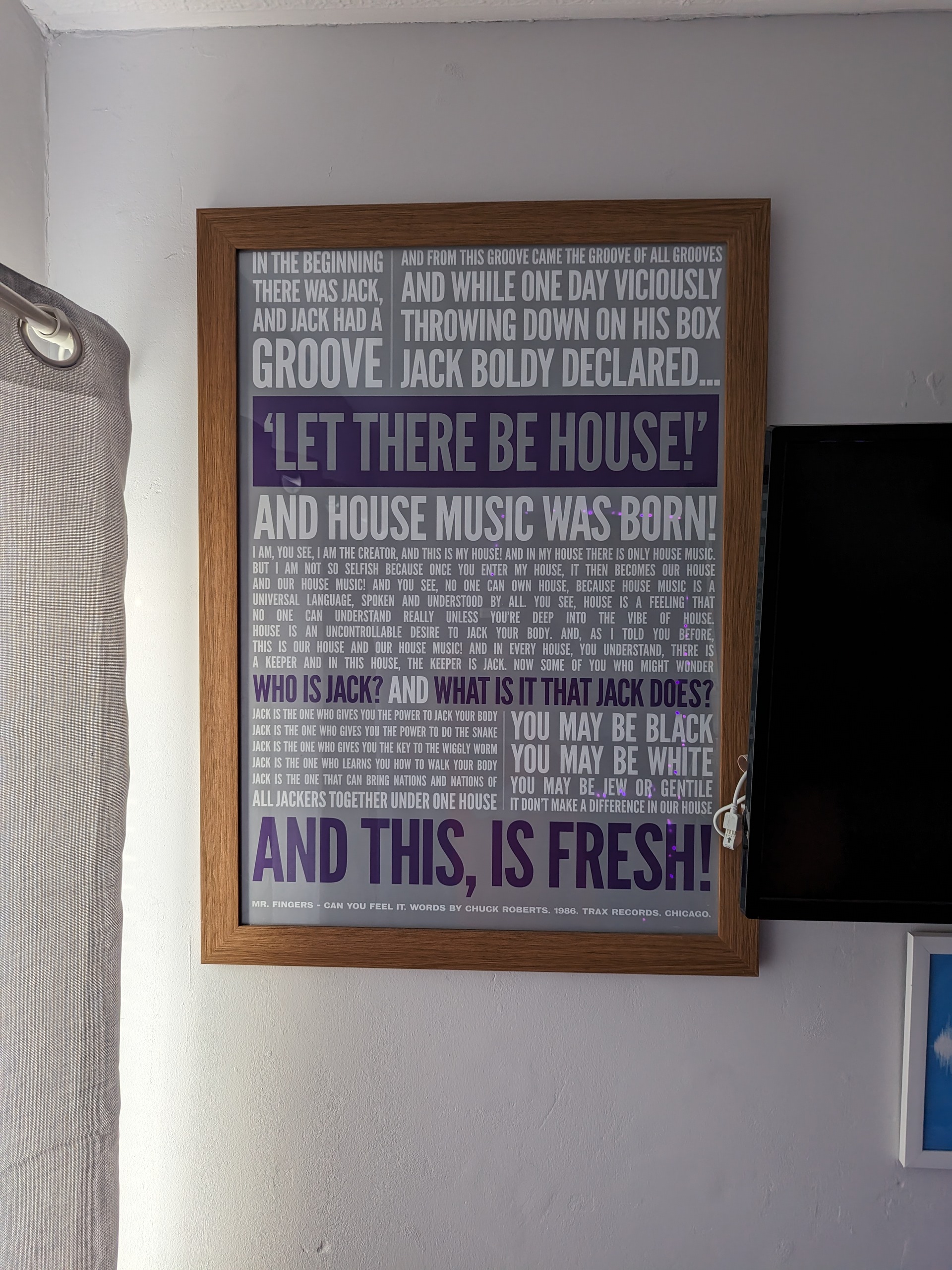 The ‘House music’ one was part of my 40th birthday gift from my partner a few years ago. They ordered the print, and then went to a framing shop to have it put in a nice frame.