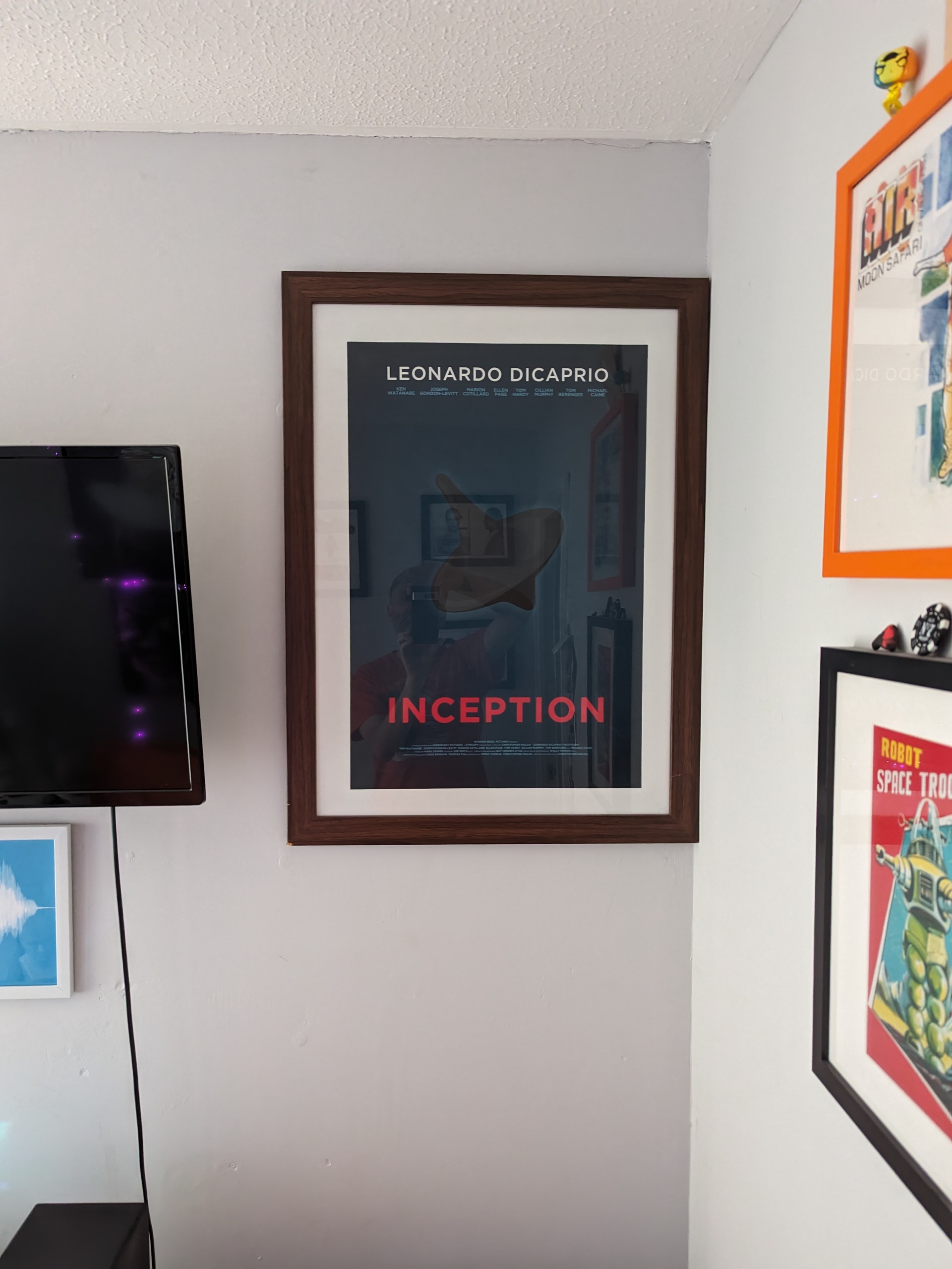 Inception was a reimagined print that an artist I know did. I really liked it and bought it from them. Then went to the frame shop and got it framed to go with the house music one.