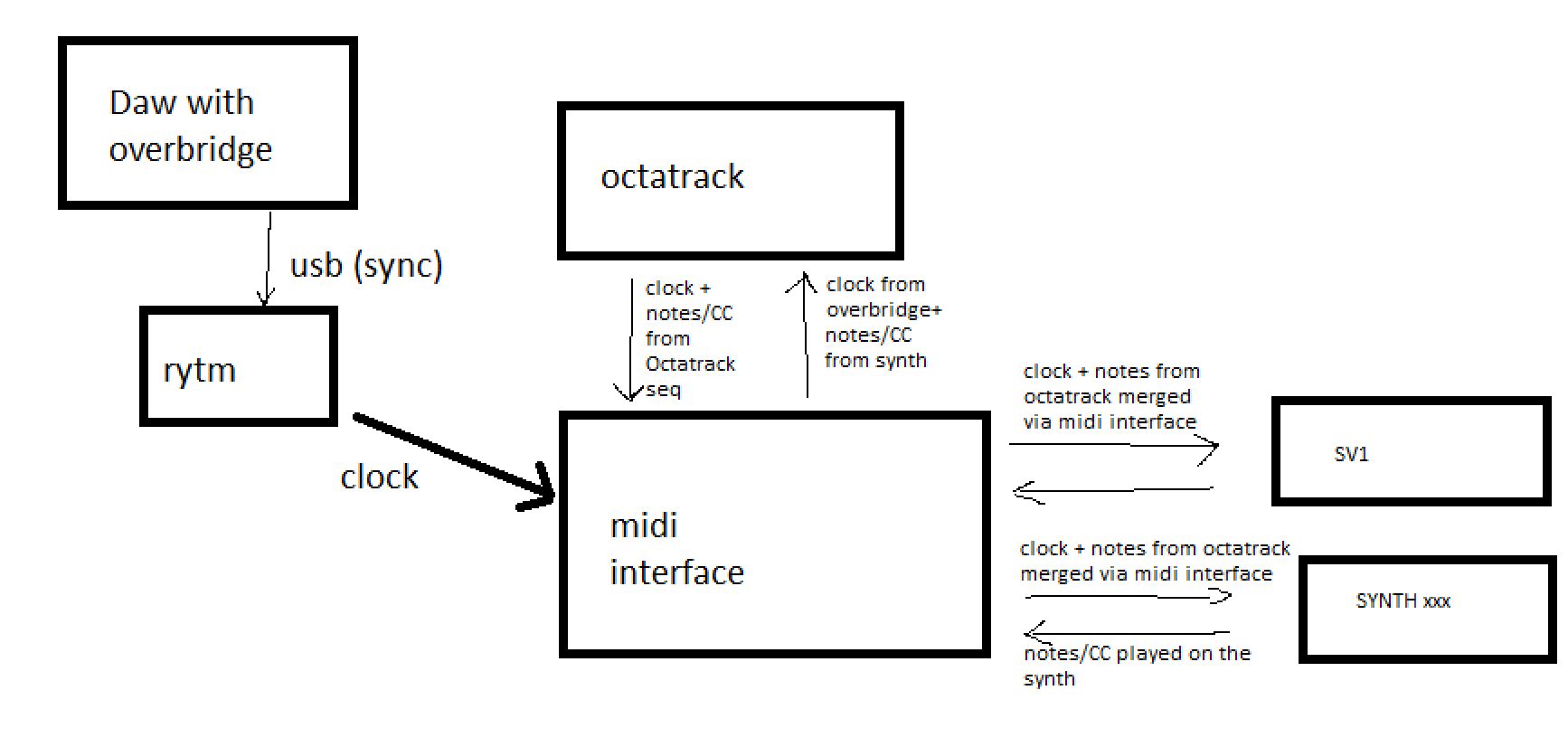 Well that’s how I had it setup, I wasn’t running the rytm with overbridge tho, I was just using the usb for a midi connection. What I had trouble with is using the sv 1 or the virus as a keyboard to enter simple chords into the octa track