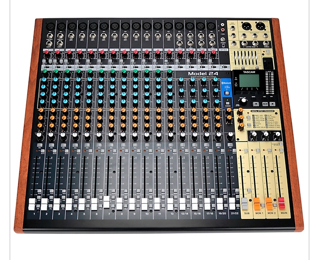 The Model 24 is a powerful, versatile, hybrid mixer for both live and recording that integrates a full-featured 22-channel professional mixer, a 24-track internal digital recorder, and a 22 X 24 USB audio interface. Model 24 is perfect for performance, recording, or both simultaneously.
