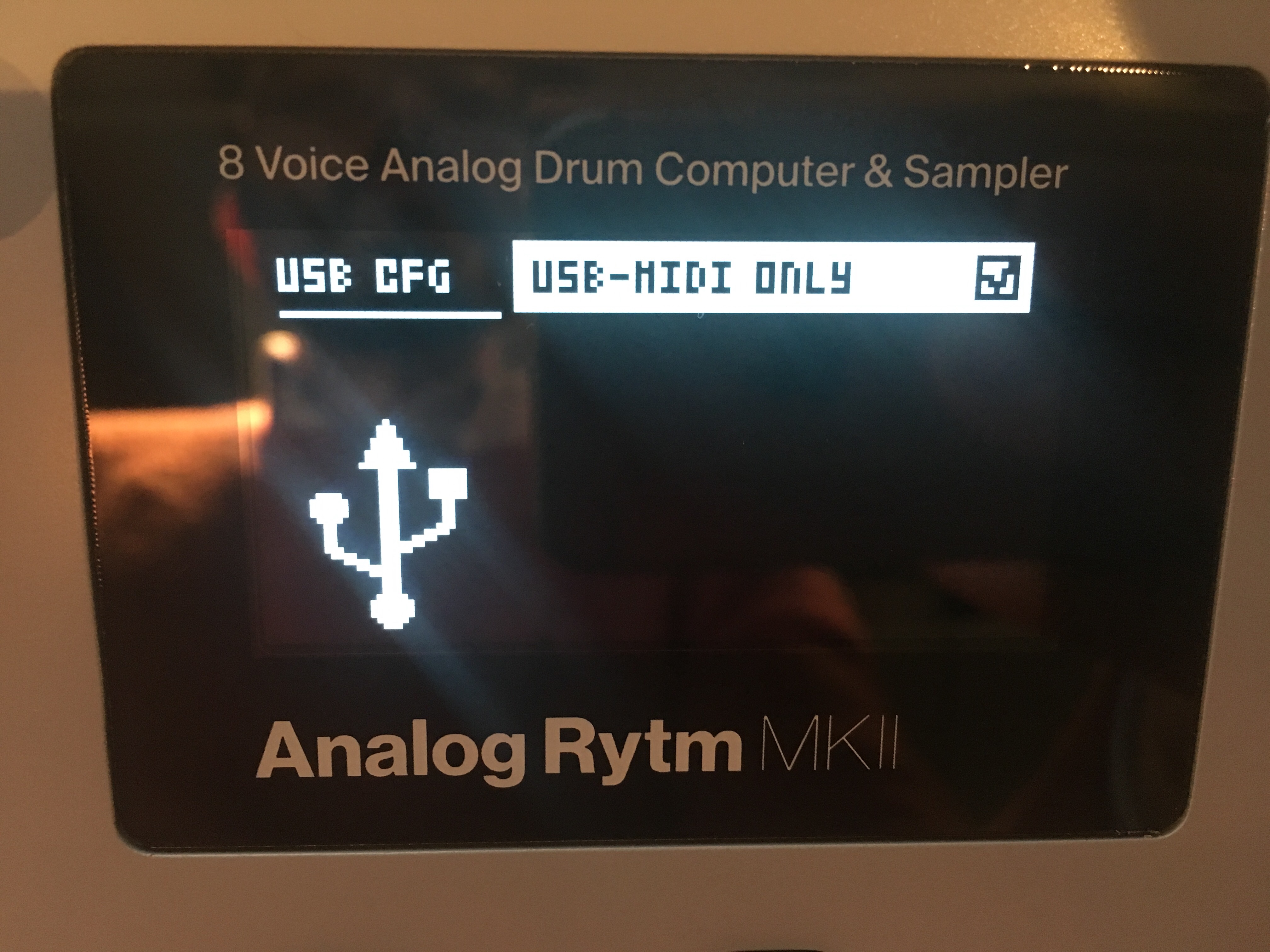 Well, I’ve done both those things a couple times now, but nothing seems to change. I also bought Overdub and I started by plugging Rytm into it, so I thought it might be the issue, so I plugged it directly to the computer, did a new restart, but nothing changed. Also, I noticed that, when navigating to SYSTEM/USB CONFIG, I only see the “USB-MIDI ONLY” option, when I guess I should also see an “OVERBRIDGE MODE” option, right?