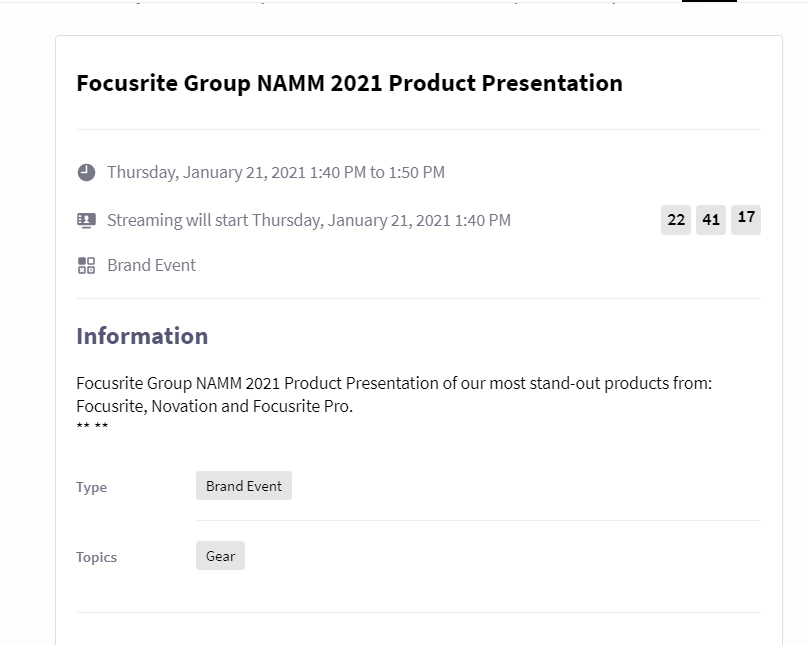 “Focusrite Group NAMM 2021 Product Presentation of our most stand-out products from: Focusrite, Novation and Focusrite Pro.”