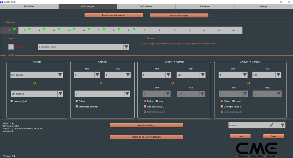 Mapper = CME in Channel 2-8 transposed -1 to CME out
