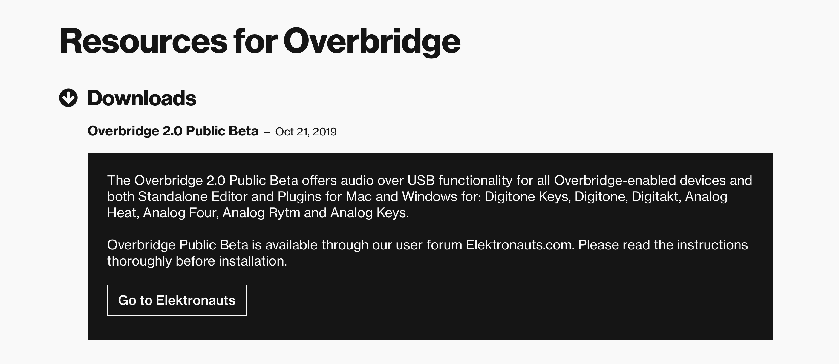 Does anyone know why I am unable to download Ovebridge public beta via the link on Elektron website?