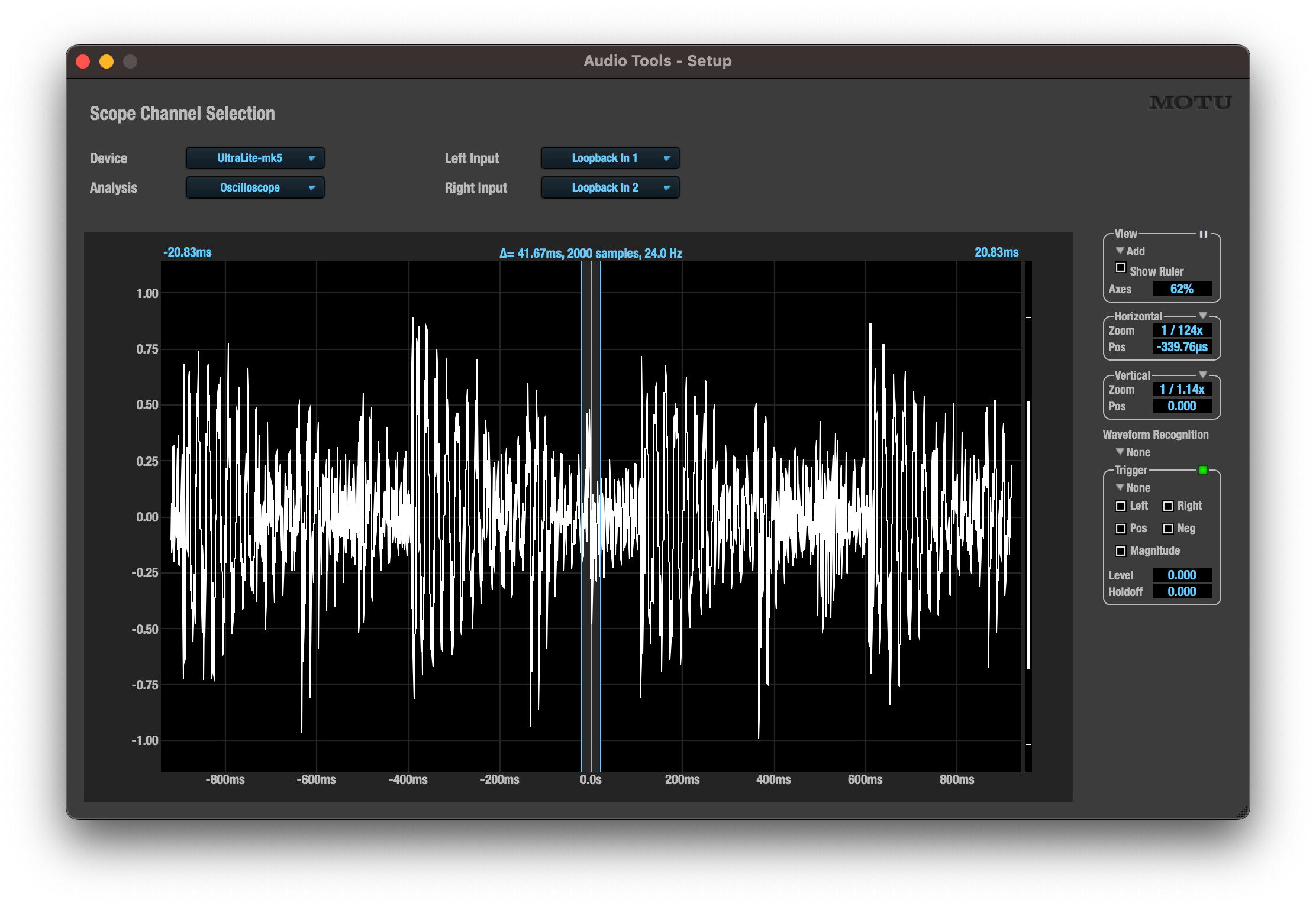 I’ve recently installed MOTU Audio Tools which is part of older Ultralite/AVB models driver, it does not come as standalone app installation only part of the driver, it works flawlessly with my Ultralite mk5 which has it’s own driver installed, my guess is that it would work for any audio interface as you can select the channels. it has oscilloscope, freq analyzer, phase and stereo image built in, I really like it except for the fact that you can’t stack screens, you have to switch between them when you want different view. other then that great tool.