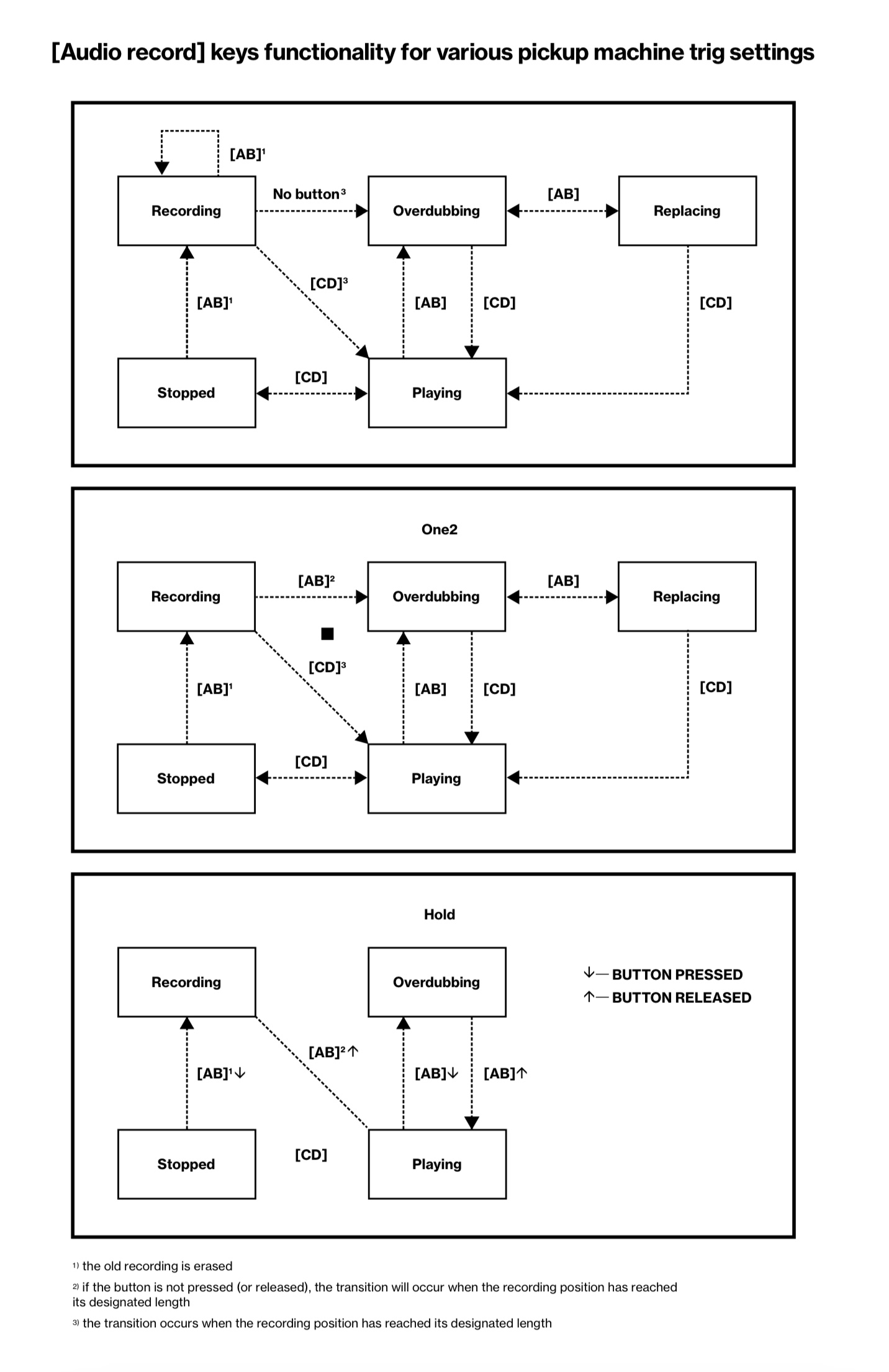 In Grid recording mode, there is also Page (Scale) + Clear, which clears the active page trigs, and Track + Clear, which clears all trigs of the active track.