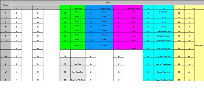 Of course you are right, but to put it in context this was all about using my RYTM in chromatic mode to trigger samples on the OT. From the top of my head the RYTM only goes up to b5 (83). This was highlighted in my pic through color coding, more or less