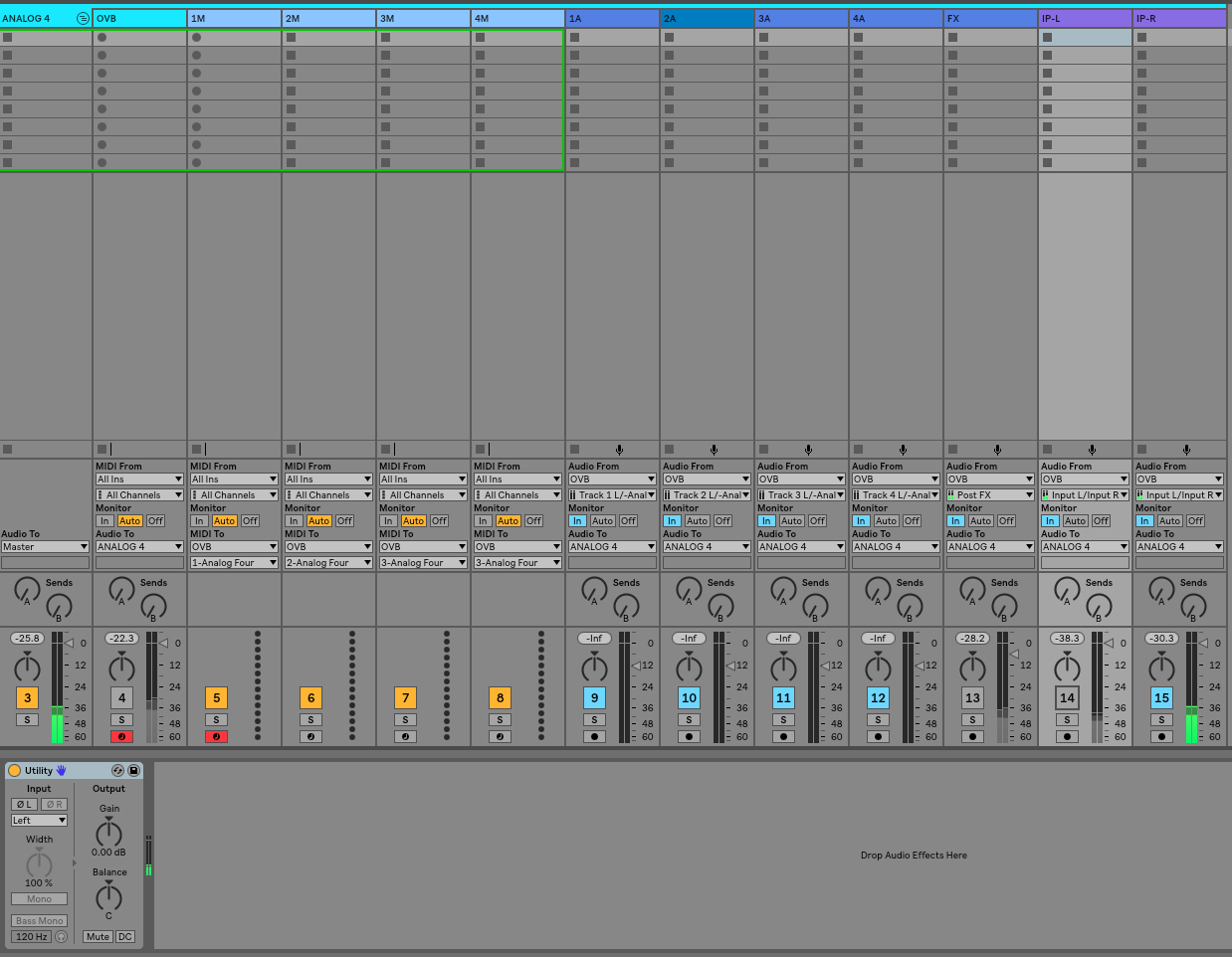So, I am experimenting with the new Overbridge Version 2.0.12.2 Beta and in my normal setup I run a 2 Mono Synths into the A4’s Inputs (separate cables into the physical inputs of the A4). Setting this up in Ableton is proving very frustrating as there seems to be no way of isolating these 2 inputs within overbridge/ableton… There is a leak-through… I have the inputs coming in to separate audio channels via the Overbridge Plugin but (I have selected the (Input L/Input R-Analog Four) there is no way to select left or right separately… So, I have tried making two instances of the audio track and then using Lives utility plugin to select right and left channels respectivley but there is still some leak-through to each channel… Any ideas Elektron/Elektron geeks?