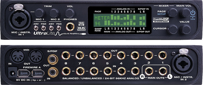 sweet - those old ones work well for this purpose and you can sometimes see similar or s/h ones on teh cheap - obviously connector format may be the driver - FW for me ! The later versions have FX and the comment I made about plugging in VSTs would require a daw or Max/MSP to do the more advanced plumbing - but teh CueMix software for the devices can be configured to provide quite flexible routing - I use it standalone to use the pre-amp but fed internally to add some stereo FX send/returns on the spare i/o and then send to OUTS - simple enough to patch in an instance of valhalla-vintage-verb to spice it up but to still be essentially working outside of the computer
