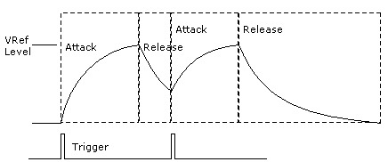 This picture doesn’t equate to the AR gate/hold but it illustrates the type of envelope it uses, unlike on the A4 where you can select whether it restarts from zero, i don’t know if the profiles are similar either, but you get the point … The envelope may be high, so when the sample or synth is retriggered you will hear the attack transients because the volume is higher than you hoped. Test this out by using bigger gaps between trigs to allow the decay phase to conclude
