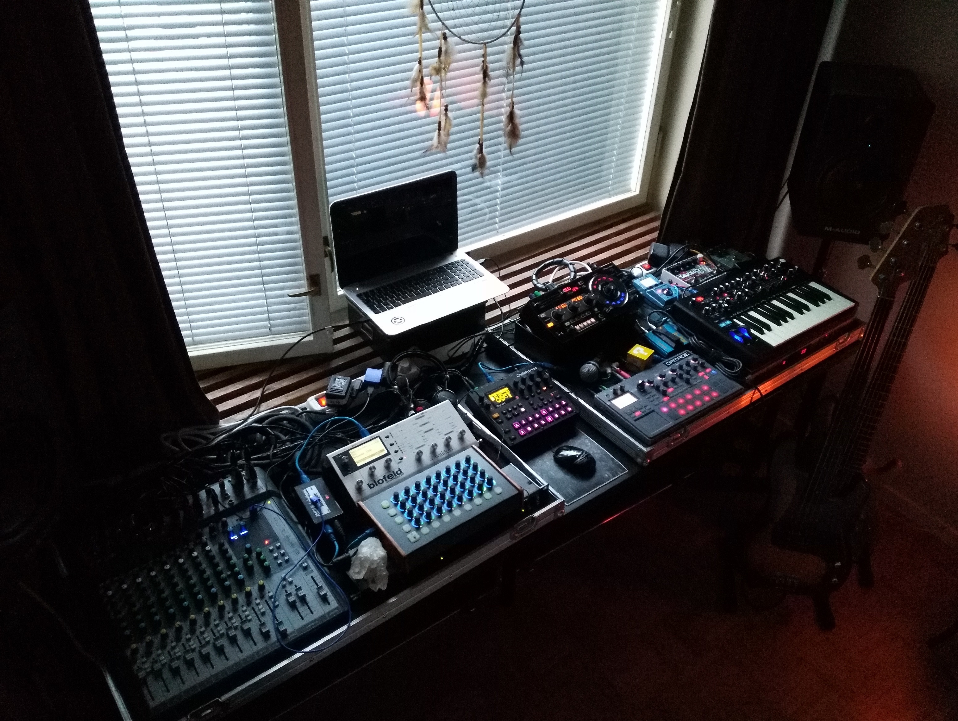This album was a series of jams recorded live with the following setup (very basically explained, theres a lot of other stuff going on on routing and effects):