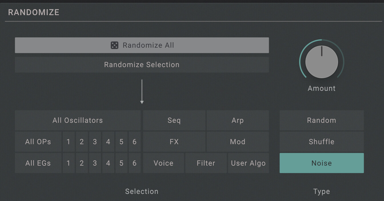 What synths or other noise generator plugins do you know of with a randomiser button? I think it’s really advantageous to have, a whole new jumping off point that you wouldn’t have found through the rote ways of making sounds you’d have otherwise. It also helps you find things you’d not expect from a synth, and it’s a real omission on some more complex synths too.