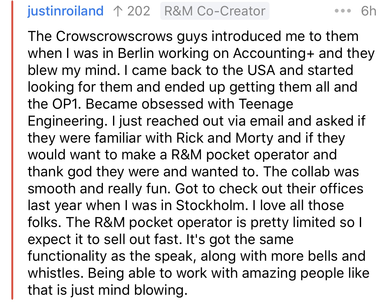 wow never guessed Justin was genuinely interested in TE. I assumed it was an inside joke got real in TE studios. Also those crowscrowscrows guys are amazing too.