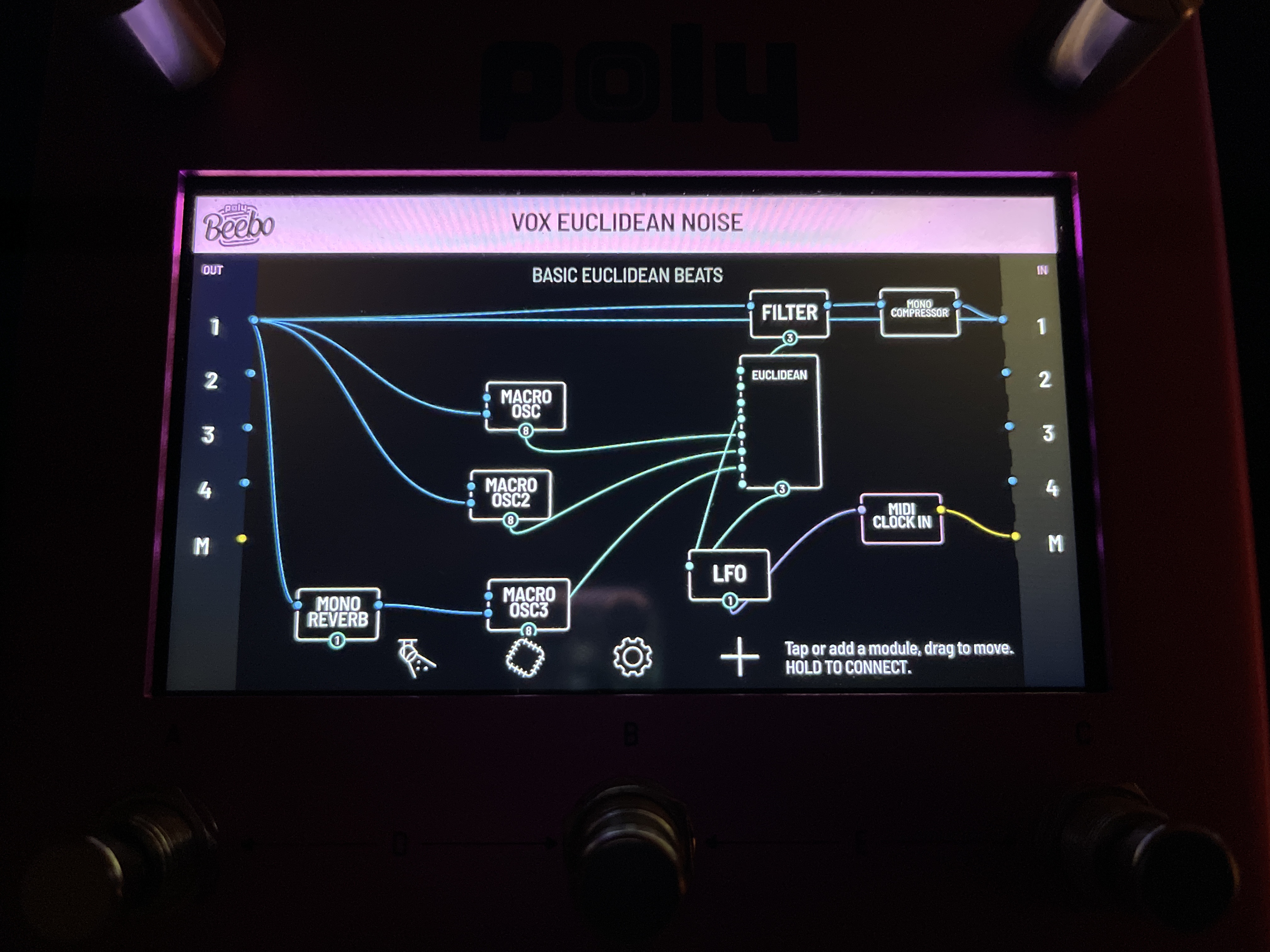 He keeps pumping out these updates faster than I can check out the new features. I initially got the beebo for fx chains for my guitar and op-1, but I just messed around with the macro osc module for the first time. Now I know why all the modular people are going crazy about plaits, it is very versatile and can sound really good in many sweet spots. Really nice that beebo can just run multiple instances of the module. Controlling the sound with a midi track from the DN is also a breeze, it’s very easy to assign the CC values and is much more fun to play around with the DN knobs rather than the touchscreen. I’m just floored to have such a huge modular playground at my fingertips and best of all: with patches that I can save and return to later.