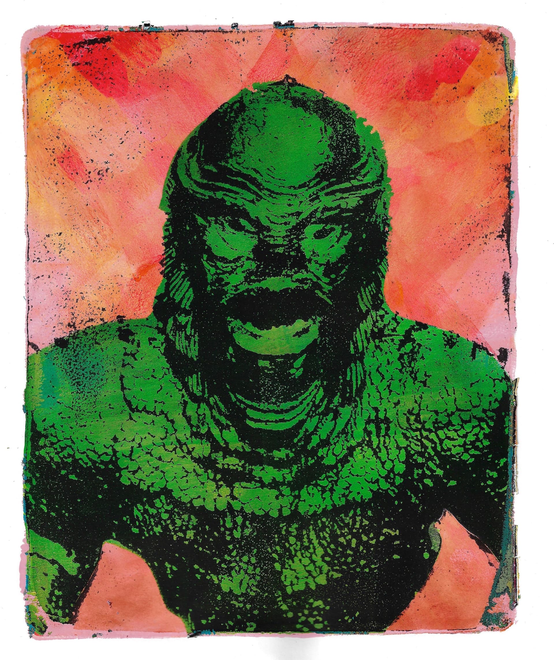 I did my first art residency at the end of september, I had an amazing time and made a ton of stuff. Spent the week making gel plate prints and going on afternoon bike rides, and watching bad movies before bed. Here’s some of my favorite prints from the trip.