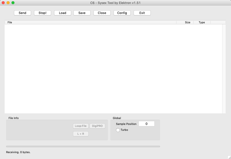 Although Rytm shows a flashing ‘Sending’ , C6 only shows ‘Receiving 0 bytes’ and not happens.