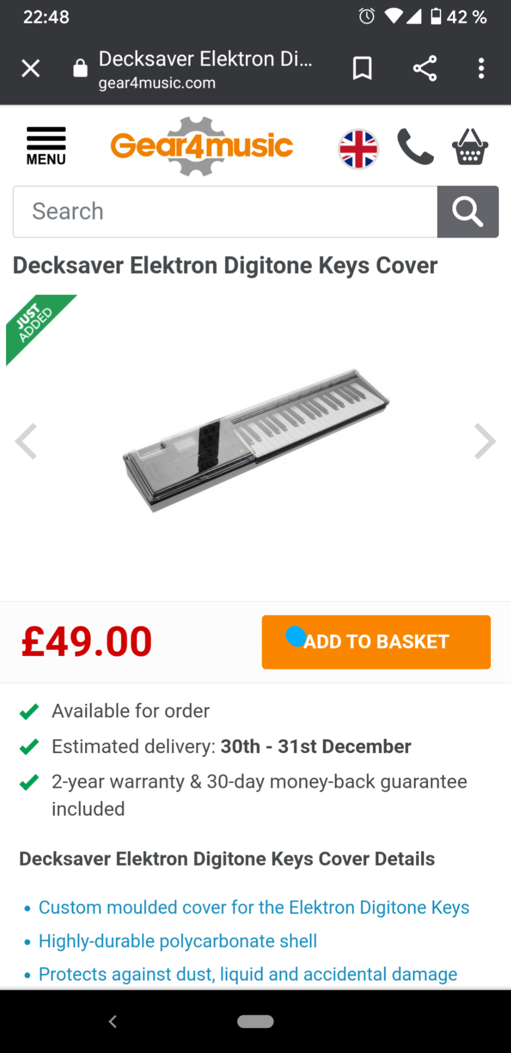 Just asked for another update from Decksaver on the Digitone Keys lid. @craig Decksaver makes the lids for all Elektron products, they are making one for the DK as well.