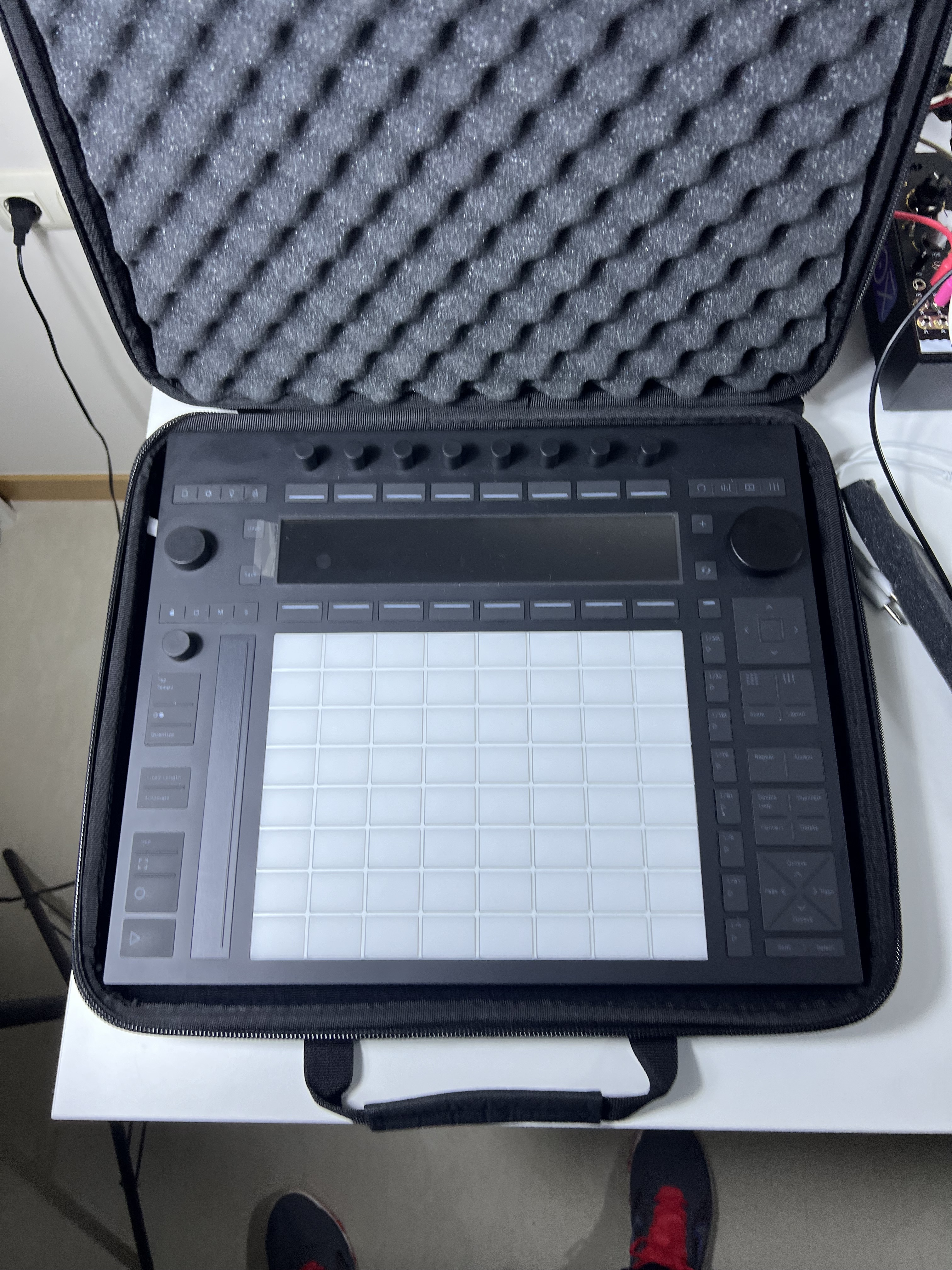 It is sturdy enough on the outside + inner cushioning to protect the Push 3 from any arms length drop. It’s super light - due to the aluminium - for its size and the lid is detachable. You can put small locks on both butterfly locks and it has rubber feet at the bottom and the downward facing horizontal side for support in standing. You can keep the decksaver on when closing the lid.