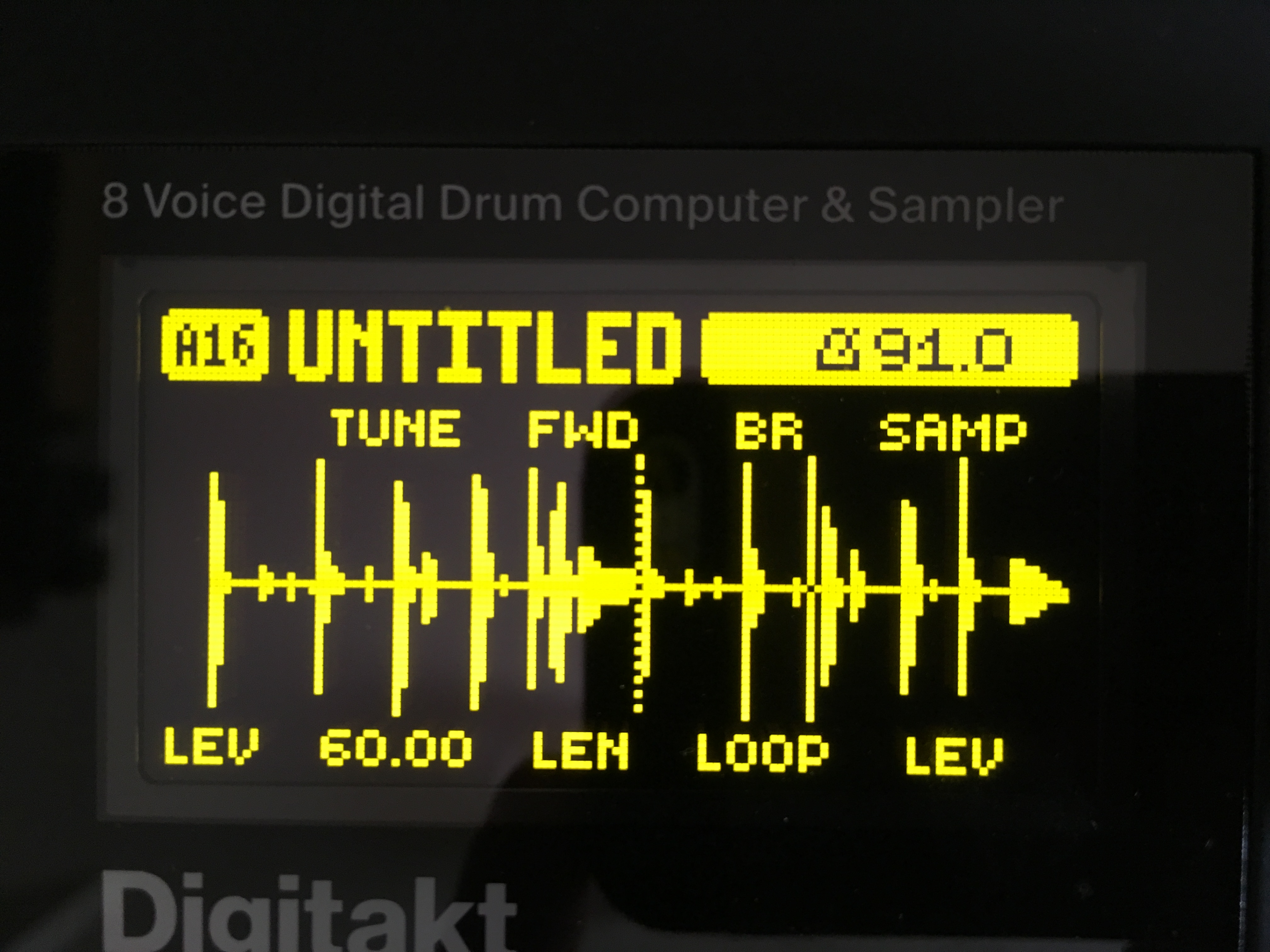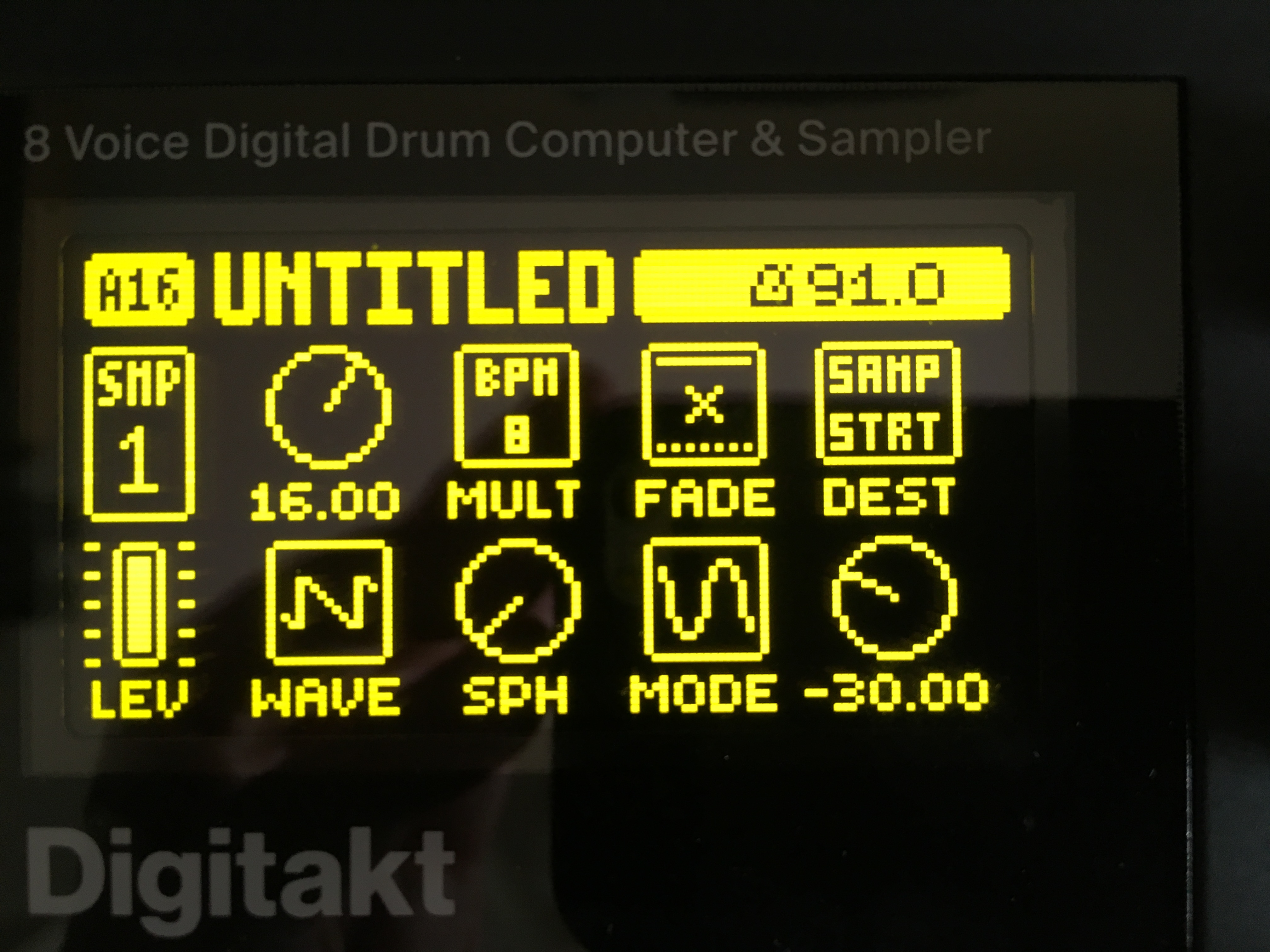 side rant: why on earth did elektron make the sample duration 120, rather than the 128 value like everything else in the box? maybe there’s a good reason but i can’t figure it out. i mean, 120 can’t be devided into ‘regular’ 4, 8, 16 etc beat divisions, so using the encoder-press-turn to increment in fours in the sample editor is useless for quick slices. 120 into 16 = 7.5
