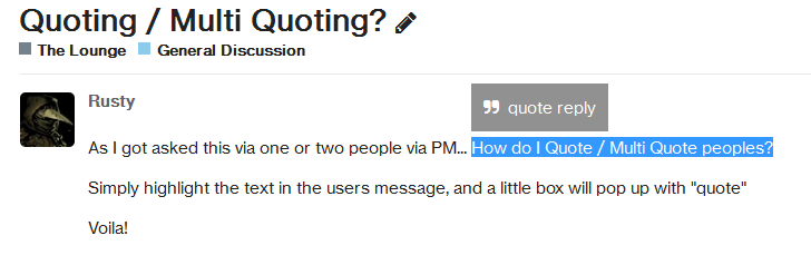 As I got asked this via one or two people via PM… How do I Quote / Multi Quote peoples?
