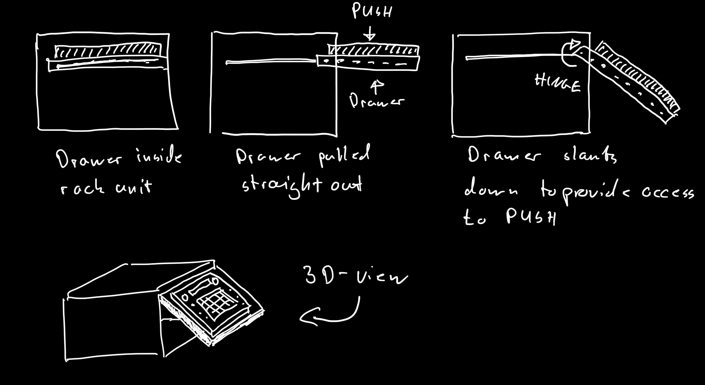 They’re asking for a 19” rack mount drawer that can be angled down.