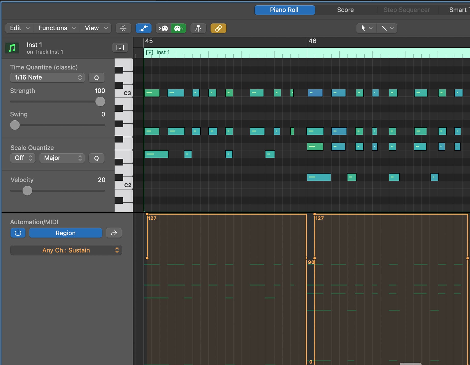 When sending the sequence without any CC only midi notes on and of, everything is recorded correctly. Then clearing the track and sending the same sequence but with the sustain pedal CC, only one note gets recorded per step, as before. Even when clearing the sequence on the same track, and trying to record the clean sequence without CCs, it didn’t record it right. Maybe something with sustain pedal message 0 and 127 messages remaining and interfering?